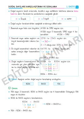 DOĞAL SAYILARI KARŞILAŞTIRMA VE SIRALAMA 1. ÜNİTE 23