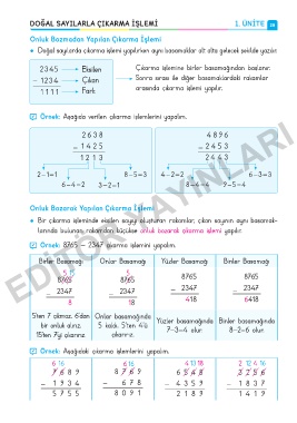 larında bulunan rakamdan küçükse onluk bozarak çıkarma işlemi yapılır.
