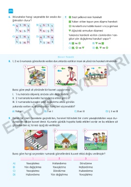 6. Mıknatıslar hangi seçenekte bir arada da- 7. Saat yelkovanının hareketi