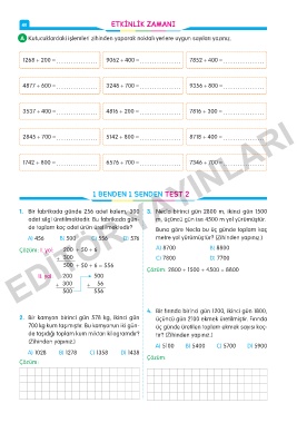 A Kutucuklardaki işlemleri zihinden yaparak noktalı yerlere uygun sayıları yazınız.