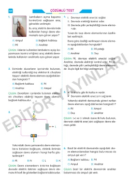Çözüm: Evlerde kullanılan lambaların açılıp ka- A) Pil B) Pil yatağı