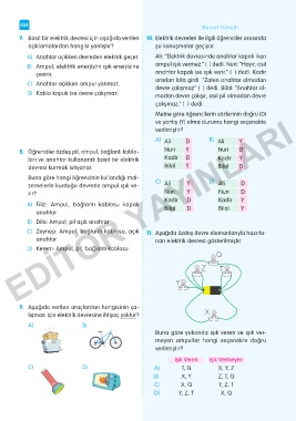 C) Zeynep: Ampul, bağlantı kablosu, açık 11. Aşağıda özdeş devre elemanlarıyla hazırla-