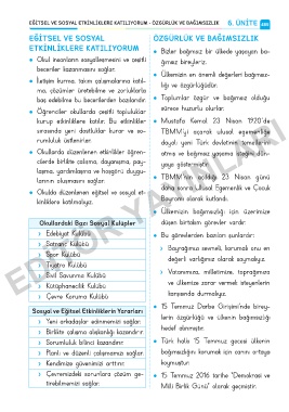 EĞITSEL VE SOSYAL ETKINLIKLERE KATILIYORUM - ÖZGÜRLÜK VE BAĞIMSIZLIK 6. ÜNITE 485