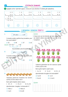 A Aşağıda verilen işlemleri yapınız. Sonuçları aynı olanları örnekteki gibi eşleştiriniz.