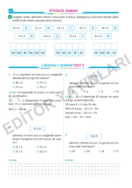 A) 80 x 6 B) 70 x 5 işleminin tahmini sonucu ile gerçek sonucu