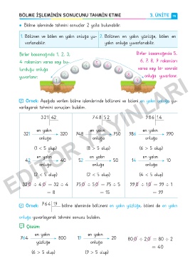 1. Bölünen ve bölen en yakın onluğa yu- 2. Bölünen en yakın yüzlüğe, bölen en