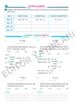 A Aşağıda verilen bölme işlemlerinin tahmini sonucu ile gerçek sonucu arasındaki farkı örnekteki