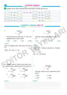A Aşağıda verilen bölme işlemlerindeki bölünenleri örnekteki gibi bulunuz.