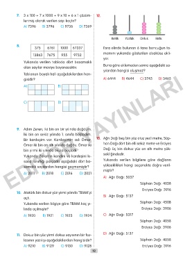 7. 3 x 100 + 7 x 1000 + 9 x 10 + 6 x 1 çözüm- 12.