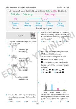DÖRT BASAMAKLI SAYILARDA BÖLÜK KAVRAMI 1. ÜNİTE – 4. TEST