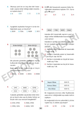 6. Okunuşu yedi bin on beş olan dört basa- 10. 875 dört basamaklı sayısının birler bö-