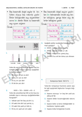 BEŞ BASAMAKLI DOĞAL SAYILARI OKUMA VE YAZMA 1. ÜNİTE – 5. TEST