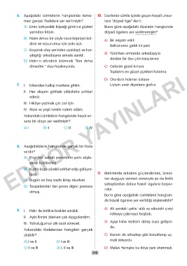 6. Aşağıdaki cümlelerin hangisinde tama- 10. Eserlerde cümle içinde geçen hayali unsur-