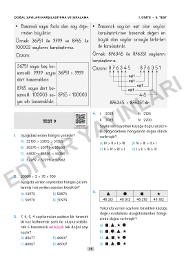 DOĞAL SAYILARI KARŞILAŞTIRMA VE SIRALAMA 1. ÜNİTE – 9. TEST