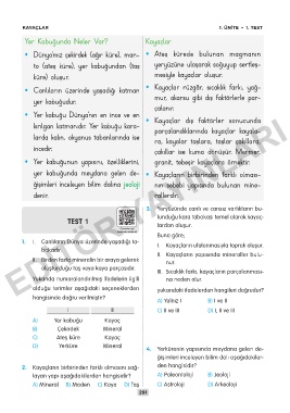 KAYAÇLAR 1. ÜNİTE – 1. TEST