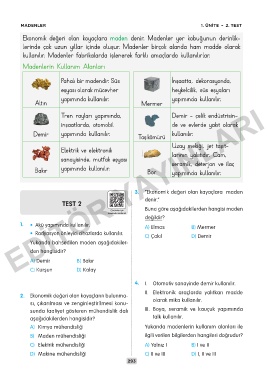 MADENLER 1. ÜNİTE – 2. TEST