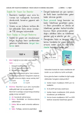 SAĞLIKLI BİR YAŞAM İÇİN BESİNLER - İNSAN SAĞLIĞI VE DENGELİ BESLENME 2. ÜNİTE – 4. TEST