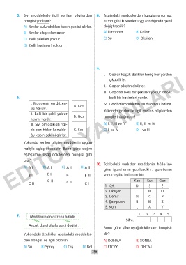 ED A) A I B) A II C) A III D) A II 10. Tablodaki varlıklar maddenin hâllerine