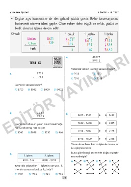 ÇIKARMA İŞLEMİ 1. ÜNİTE – 13. TEST