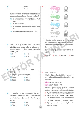 7. 3465 - 2501 işleminde eksilen en yakın Yanlış sonuçta anahtar kilidi açmamakta-