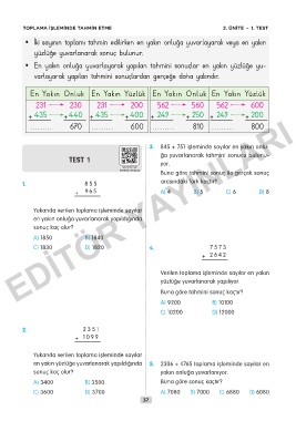 TOPLAMA İŞLEMİNDE TAHMİN ETME 2. ÜNİTE – 1. TEST