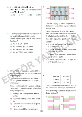 6. A en büyük üç basamaklı doğal sayı ve B rafta bulunan her bir kitap 150 sayfalık ve