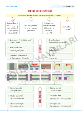 (A shows a place.) (A'yı geçin.) (Sola dönün.)