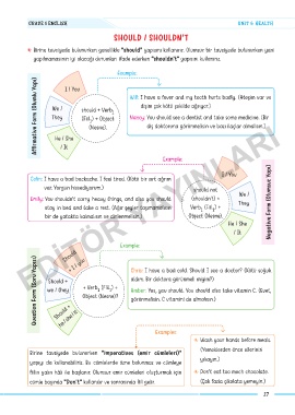 Affirmative Form (Olumlu Yapı) We / should + Verb Will: I have a fever and my tooth hurts badly. (Ateşim var ve