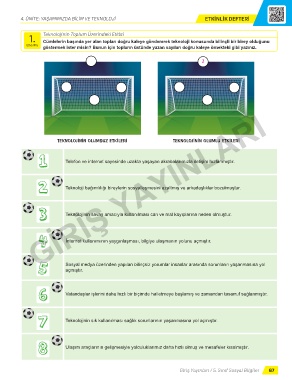 Cümlelerin başında yer alan topları doğru kaleye göndererek teknoloji konusunda bilinçli bir birey olduğunu
