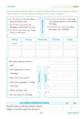 Exercise 6: Read the information below and complete Tim’s timetable. Then answer the questions. (Aşağıdaki