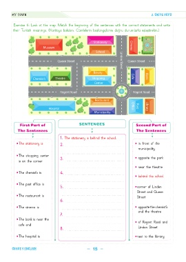 their Turkish meanings. (Haritaya bakalım. Cümlelerin başlangıçlarını doğru durumlarla eşleştirelim.)