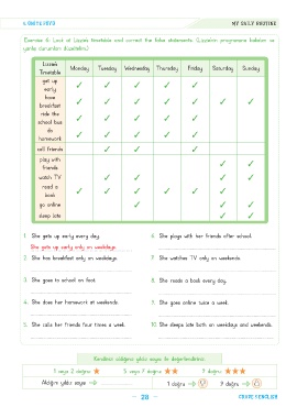 Exercise 6: Look at Lizzie’s timetable and correct the false statements. (Lizzie’nin programına bakalım ve