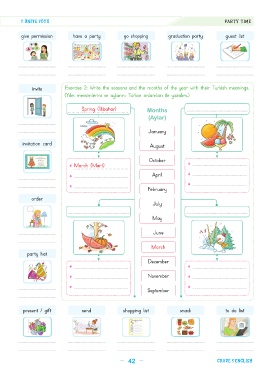 invite Exercise 2: Write the seasons and the months of the year with their Turkish meanings.