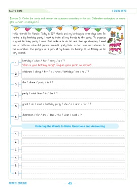 Exercise 5: Order the words and answer the questions according to the text. (Kelimeleri sıralayalım ve metne