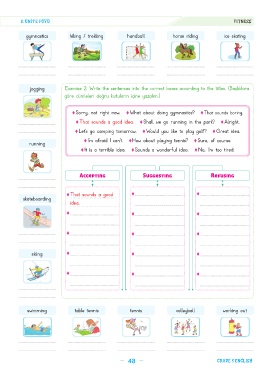 jogging Exercise 2: Write the sentences into the correct boxes according to the titles. (Başlıklara