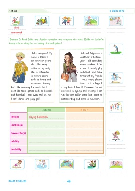 Exercise 3: Read Eddie and Judith’ s speeches and complete the table. (Eddie ve Judith’ in