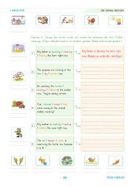 Exercise 4: Choose the correct words and rewrite the sentences with their Turkish