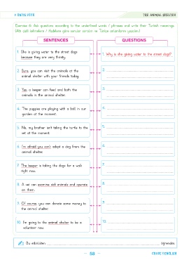 Exercise 6: Ask questions according to the underlined words / phrases and write their Turkish meanings.