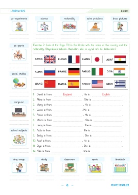 do sports Exercise 2: Look at the flags. Fill in the blanks with the name of the country and the