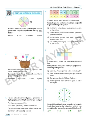 A) Yeşil B) Sarı C) Pembe D) Mavi göre az olasılıklıdır.