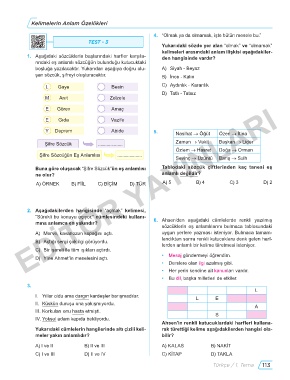 rındaki eş anlamlı sözcüğün bulunduğu kutucuktaki
