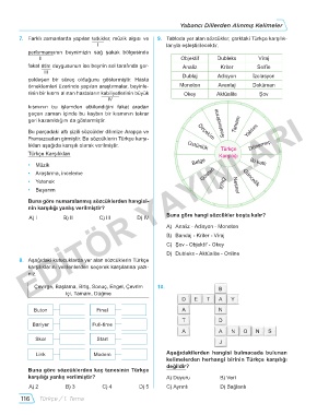 8. Aşağıdaki kutucuklarda yer alan sözcüklerin Türkçe