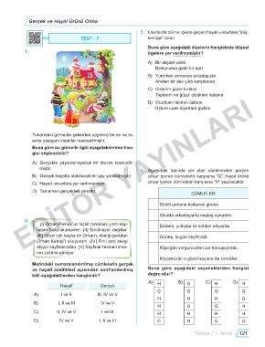 C) Hayali unsurlara yer verilmemiştir� unsur içeren cümlelerin karşısına “H” yazılacaktır�