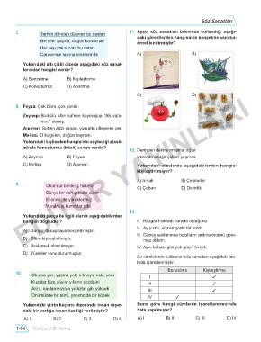 Bu cümlelerde kullanılan söz sanatları aşağıdaki tab-