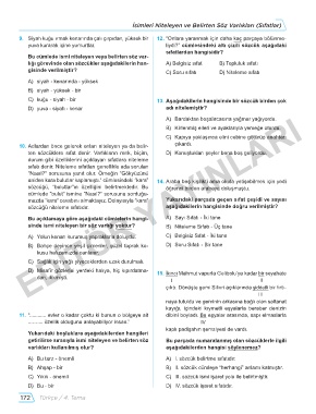 aniden kara bulutlar kaplamıştı�” cümlesindeki “kara” 14. Araba beş kişilikti ama okula yetişebilmek için yedi