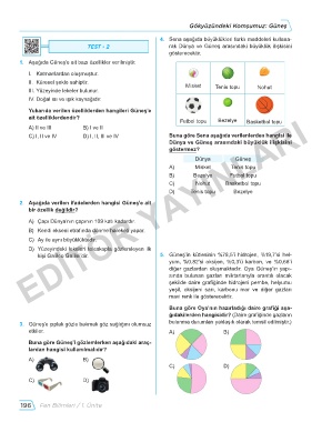 TEST - 2 rak Dünya ve Güneş arasındaki büyüklük ilişkisini