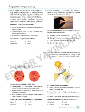 II� Yaptığı araştırmalarda Güneş’in katmanları hak- Bu durumun nedeni aşağıdaki seçeneklerin han-