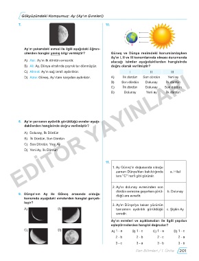 D) Azra: Güneş, Ay’ı tam karşıdan aydınlatır� A) Ilk dördün Son dördün Yeni ay
