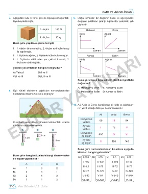 7. Aşağıdaki kutu iki farklı şekilde ölçülüp sonuçlar tab- 9. Dağa tırmanan bir dağcının kütle ve ağırlığındaki