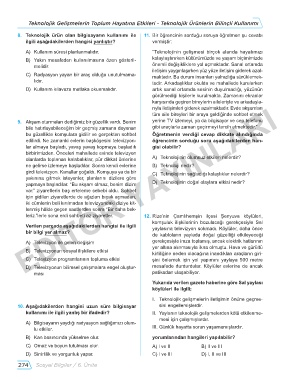 8. Teknolojik ürün olan bilgisayarın kullanımı ile 11. Bir öğrencinin sorduğu soruya öğretmen şu cevabı